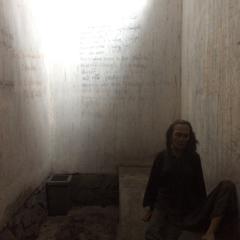 The war museum in Ho Chi Minh honestly brought me to tears. Seeing the destruction in Vietnam and the suffering from such a violent war is gut-wrenching. Never before had I learned about a war from the opposite point of view, where my home country is seen as the brutal enemy. Pictures and evidence of our country's infliction of their suffering laid across the walls and in cases right in front of me. During the war the US partnered with the South of Vietnam against the North. The US joined in the war in efforts to try and stop the spread of communism, but in the end the North took over Vietnam as a communist country. The North and South were brutal to each other. You can see a picture of a prisoner that was held captive below. They hardly had anything left on their bodies but skin and bones. The barbed wire cages below were referred to as tiger cages. They were so small and hung so low that it made it impossible for a prisoner to ever sit up straight. It left them with permanent spinal damage after days in these cages, in addition to the deep cuts covering their bodies from the wire stabbing them in every direction.